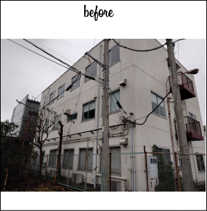 鶴見区安善町の社屋外壁改修工事です。 外壁塗装、屋上・バルコニー防水、シーリング打替え工事、換気フード取替え工事を行いました。